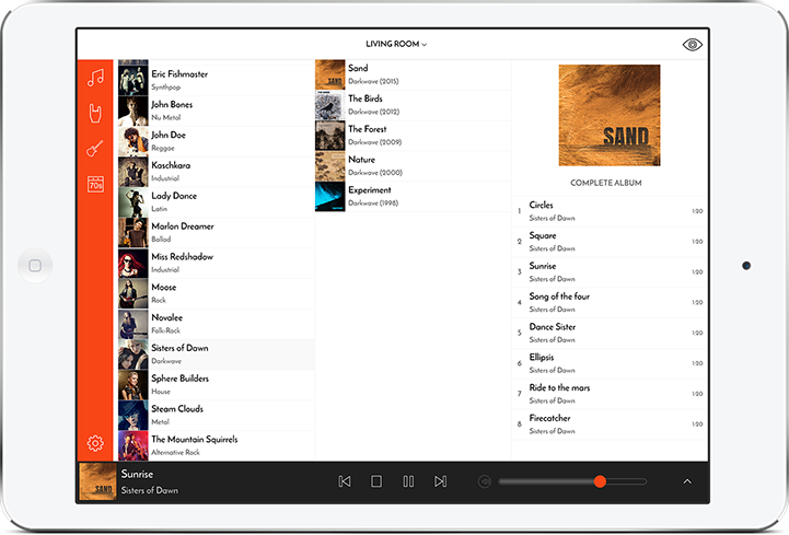 Choose between a simple list view, big images of artists and albums or combine both views.